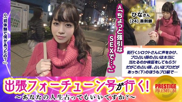 【収録時間:50分街行く女子に声をかけ、無料で高額占い師から占ってもらい本当に占いが合ってるのか検証をしてもらう!薬剤師のひなさん(24)過去にトラウマがあり男性不信になっている事が占いで発覚!だったらそんな過去忘れるくらい男を好きになっちゃえばいいじゃない!占い師のいつものセクハラハンドパワーから強引に高速手マン!すごい勢いで吹きまくる彼女、占い効果なのか!?そんな彼女もエロスイッチが入ったのかねっとりフェラを披露。「挿れてくだしゃい」連呼でもう男性不信解消か!最後は占い師の濃厚SEXを楽しむ結果に…笑